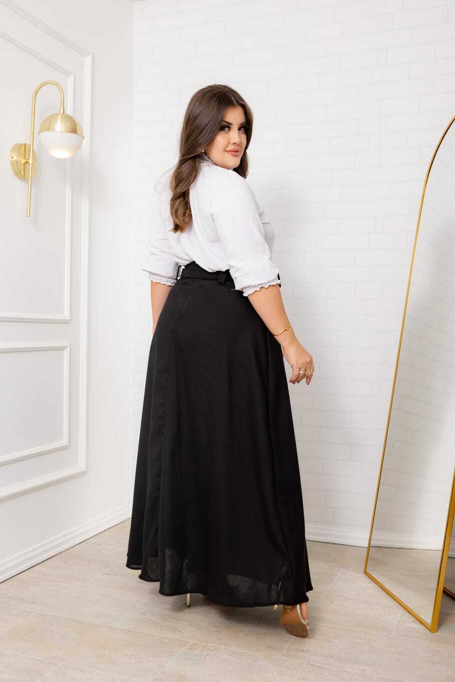 A Saia Vitória Longa é a peça perfeita para quem busca elegância e sofisticação. Fabricada com tecido de linho, esta saia não só proporciona um visual refinado, mas também garante conforto ao longo do dia.
